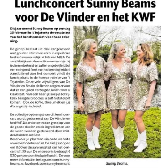 Sunny Beams brengt de magie van ABBA tot leven met drie sprankelende zangeressen. Van intieme optredens tot grotere podia en evenementen: altijd een feest van herkenning!